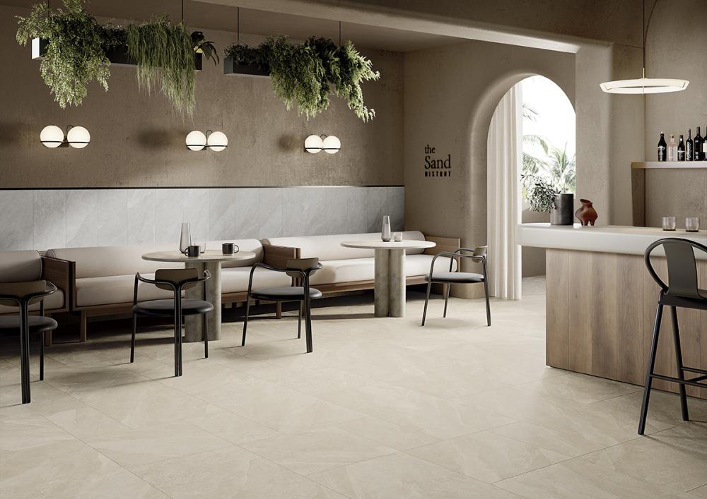 Mit den Farben Ghiaccio, Perla, Fumo, Lava und Sabbia bietet Atlantis eine vielseitige Auswahl für unterschiedliche Einrichtungsstile – von hellen, modernen Wohnräumen bis hin zu warmen, erdigen Raumkonzepten. Unterschiedliche Formate ermöglichen flexible Verlegemuster und eine individuelle Raumgestaltung in Wohn- und Objektbereichen.