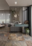 Die detailreich nachgebildeten Schieferoberflächen werden zum visuellen Highlight und verleihen Innen- wie Außenbereichen eine luxuriöse, natürliche Atmosphäre. Die lebendige Farbvariation – von tiefen Grautönen bis hin zu feinen Lichtreflexen und kontrastreichen Nuancen – schafft ein hochwertiges, fast schon exklusives Ambiente, das den Charme echten Natursteins eindrucksvoll widerspiegelt.