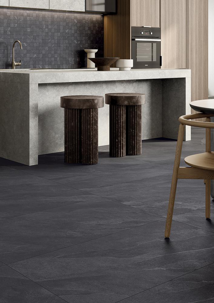 Mit den Farben Ghiaccio, Perla, Fumo, Lava und Sabbia bietet Atlantis eine vielseitige Auswahl für unterschiedliche Einrichtungsstile – von hellen, modernen Wohnräumen bis hin zu warmen, erdigen Raumkonzepten. Unterschiedliche Formate ermöglichen flexible Verlegemuster und eine individuelle Raumgestaltung in Wohn- und Objektbereichen.