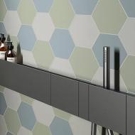 Das Design spielt mit sanften Pastelltönen und der zeitlosen Form des Sechsecks, wodurch Räume eine subtile, aber wirkungsvolle Dynamik erhalten. Die harmonische Farbpalette verleiht jedem Interieur eine moderne Leichtigkeit und raffinierte Eleganz.